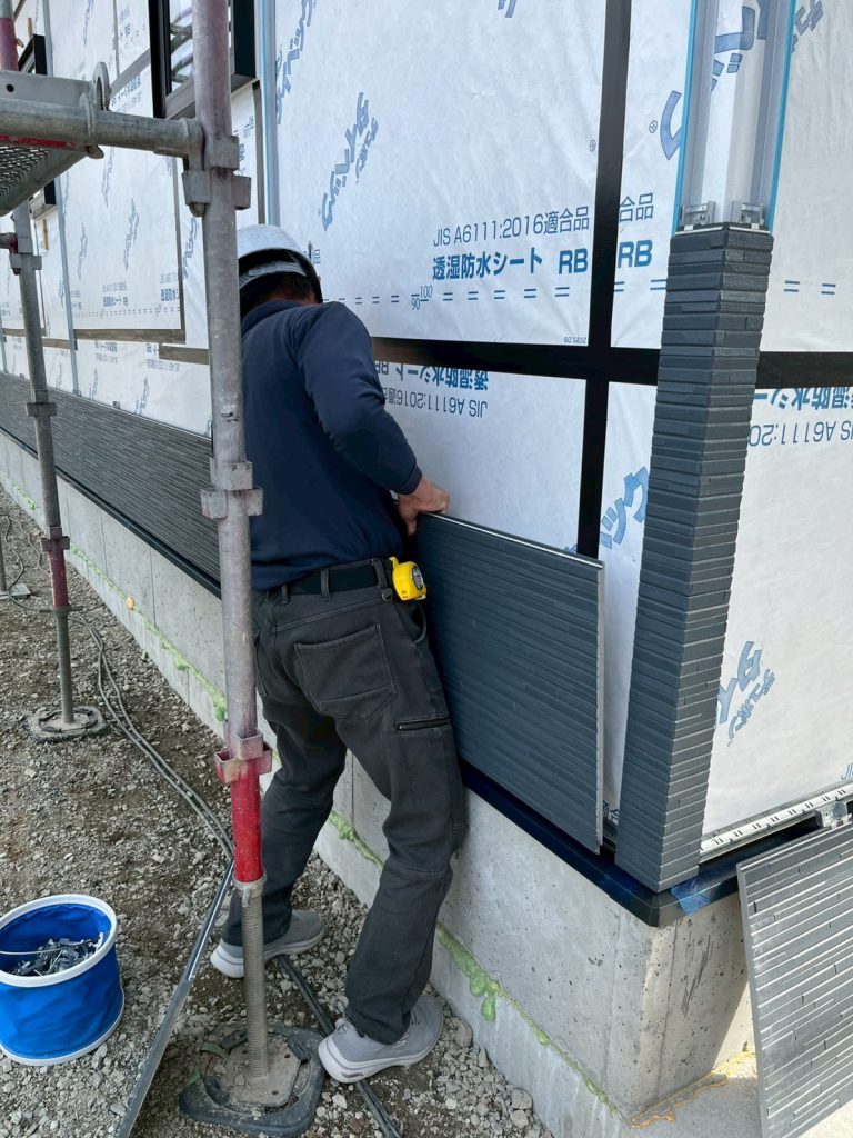 サイディングを貼っている様子です。
