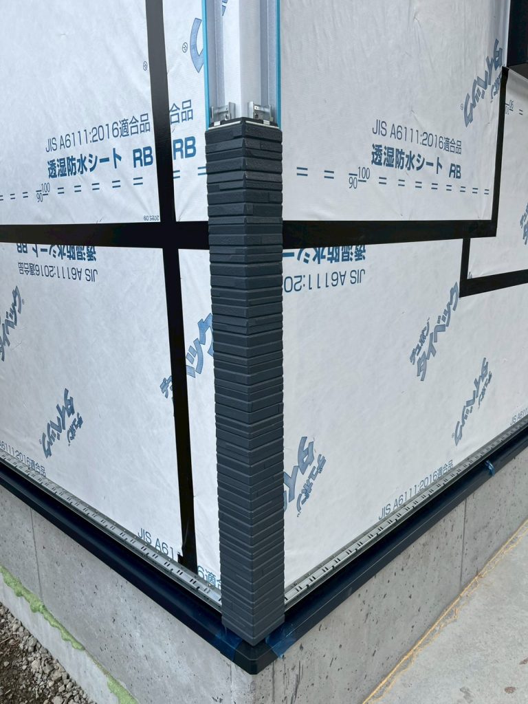 ここも屋根のときと同じく、下から上に貼っていくことで水が入らない仕組みになっています。