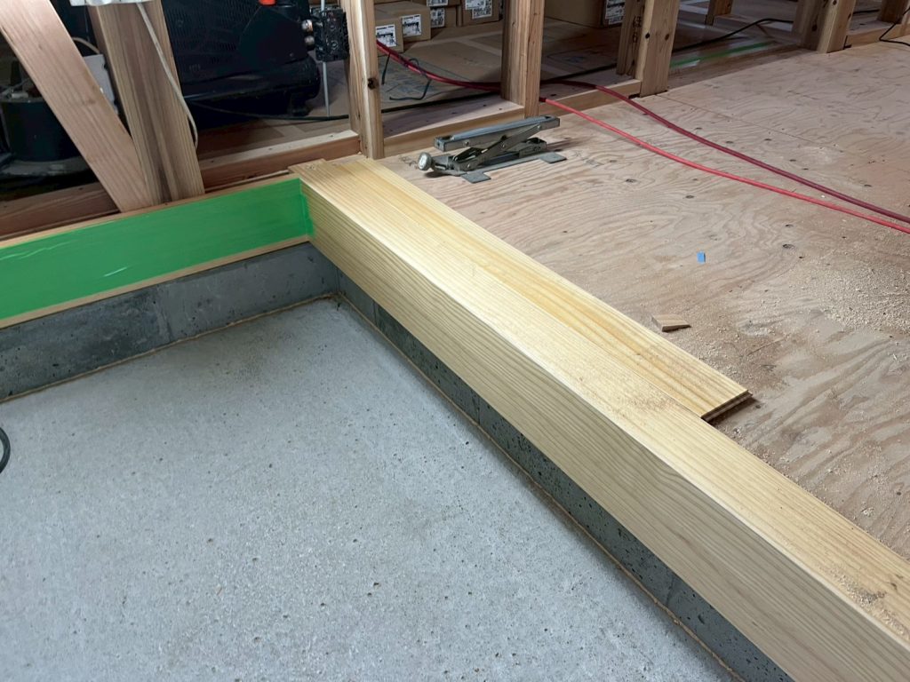 玄関框はなるべく床色と合わせて施工していきます。